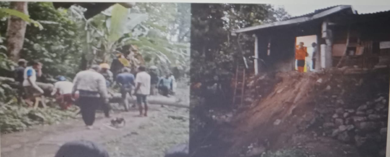 longsor di desa sukasirna ancam 4 rumah, peristiwa pertama berupa tanah longsor terjadi sekitar pukul