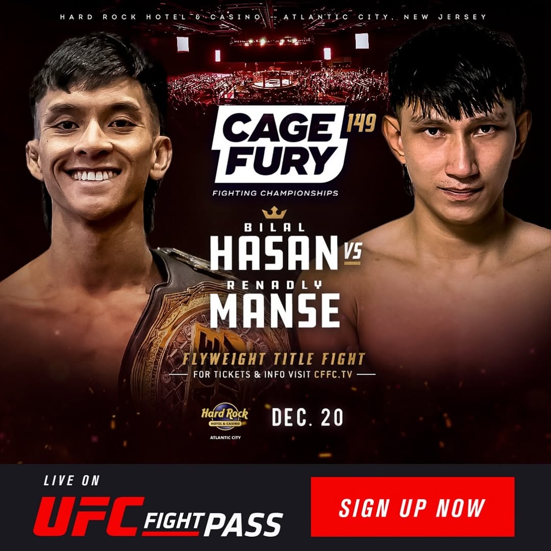 Jakarta — Dunia MMA Indonesia kembali mencatat babak baru dalam perjalanan panjang menuju panggung global. Dua petarung asal Indonesia, Bilal Hasan dan Renadly Manse, resmi dijadwalkan saling berhadapan dalam ajang Cage Fury Fighting Championship (CFFC) 149 pada 20 Desember 2025. Duel ini menyita perhatian luas karena untuk pertama kalinya dua fighter Indonesia dipertemukan dalam laga resmi di bawah promotor besar Amerika Serikat.
