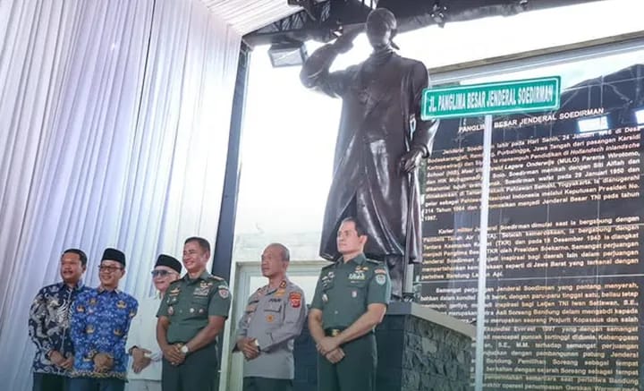 KASUKABUMI — Sebuah monumen baru kini memperkaya wajah Kabupaten Bandung. Patung Jenderal Besar Soedirman resmi berdiri di kawasan Soreang sebagai simbol semangat juang, nasionalisme, dan cinta tanah air yang abadi. Peresmian berlangsung pada Senin (10/11/2025), bertepatan dengan momentum Hari Pahlawan, dihadiri oleh Wakil Gubernur Jawa Barat Erwan Setiawan, unsur TNI, serta jajaran Pemerintah Daerah Provinsi Jawa Barat.