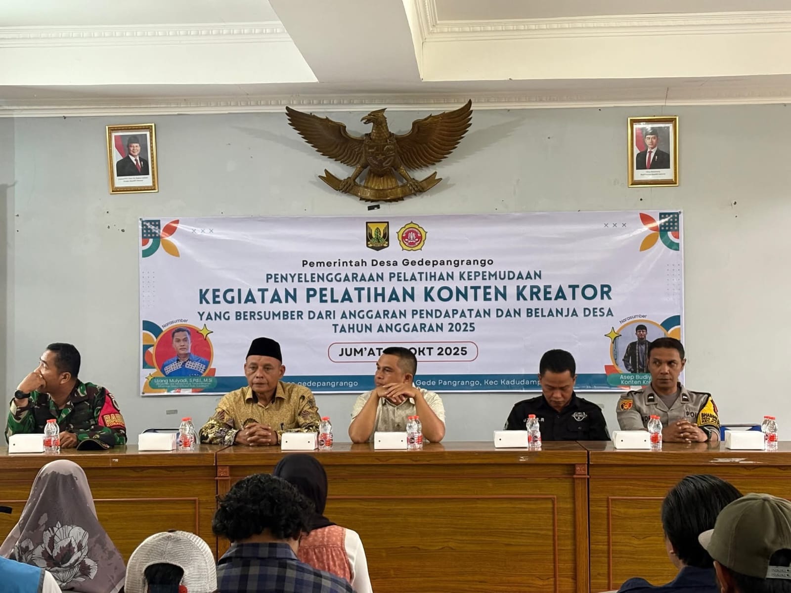 KASUKABUMI – Semangat digital terasa kuat di Aula Desa Gede Pangrango, Kecamatan Kadudampit. Sebanyak 40 anggota Karang Taruna Desa Gede Pangrango mengikuti Pelatihan Konten Kreator yang digelar Pemerintah Desa Gede Pangrango, Jumat (24/10).