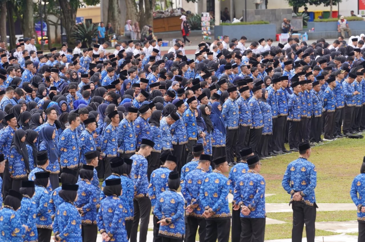 Sukabumi – Pemerintah Kota Sukabumi menggelar upacara gabungan untuk memperingati HUT Ke-54 Korpri, Hari Guru Nasional, dan HUT Ke-80 PGRI tahun 2025 di Lapang Merdeka, Senin (1/12). Kegiatan diikuti para ASN dan insan pendidikan dengan antusiasme tinggi. Wali Kota Sukabumi Ayep Zaki memimpin langsung pelaksanaan upacara bersama unsur Forkopimda, pimpinan DPRD, Wakil Wali Kota, Sekda, TNI-Polri, tokoh masyarakat, serta jajaran lembaga pemerintahan dan pendidikan.